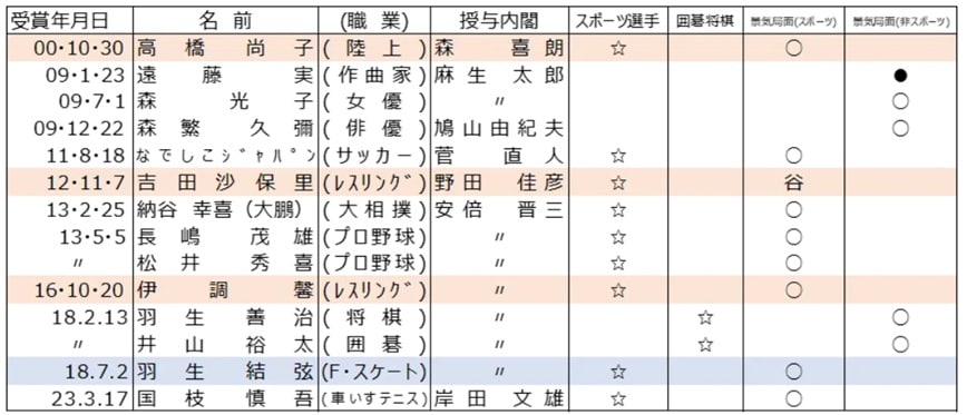 ただし、日経平均株価が上昇した3つの冬季オリンピックは、前述の日の丸飛行隊の1972年の札幌大会と、人気が高かった男子のフィギュアスケーター羽生結弦選手が金メダルを2大会連続して獲得した2014年ソチ大会と2018年平昌大会です。羽生結弦選手は2018年に国民栄誉賞を受賞しました。オリンピック選手としての偉業を表彰された4人目の受賞者で、冬季オリンピック選手としては初めてでした。