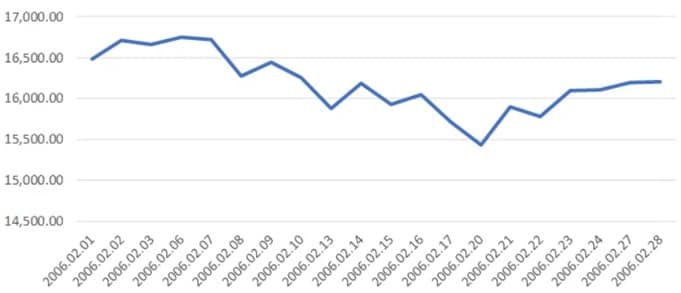 ただし、日次データでみると日経平均株価のボトムは2月20日で、その日の終値は1万5,437円93銭でした。フィギュアスケート女子シングルが始まると潮目が変わり、上昇に転じたのです。女子シングル・ショートプログラムが行われたのは2月21日、フリースケーティングが行われたのは2月23日でした。2月24日には1万6,101円91銭とボトムから+4.3%上昇しましたが、閉会式直後の株価が開会式直前の水準まで戻ることは難しかったのだといえるでしょう。