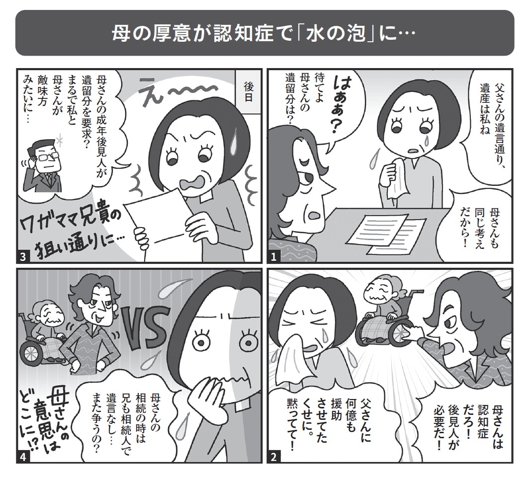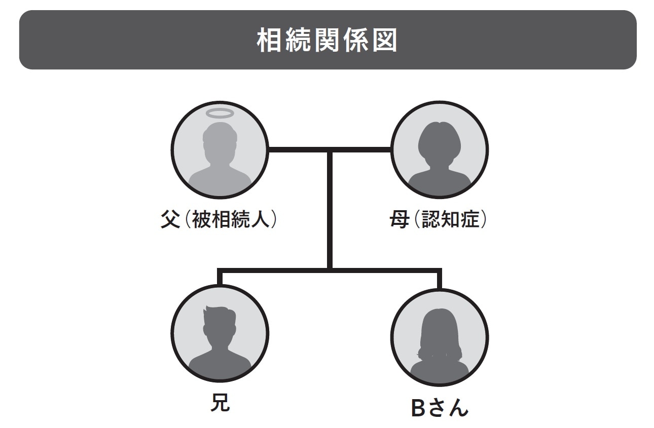 母は2年前に認知症を患い介護施設で暮らす。兄は多額の生前贈与を受け海外在住。Bさんが実家の近くに住み親の世話をしてきた。開業医の父は「財産はすべてBさんに」と遺言書を残して亡くなる。