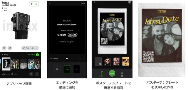 専用アプリ※2では、撮影した動画を組み合わせて編集したり、映画のようなオープニングやエンディングのテンプレートを追加でき、動画をより特別に仕上げることが可能。さらに、「ダイレクトプリント機能」を搭載し、スマホの画像をチェキプリント™にできます。