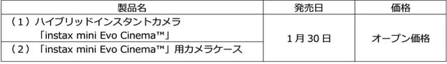 富士フイルム株式会社(本社:東京都港区、代表取締役社長・CEO:後藤禎一氏)は、instax™”チェキ”のハイブリッドインスタントカメラ「Evoシリーズ」の新モデルとして「instax(インスタックス)mini(ミニ)Evo(エヴォ)Cinema(シネマ)™」(以下、「mini Evo Cinema」)を2026年1月30日に発売する。以下、PR TIMESより。