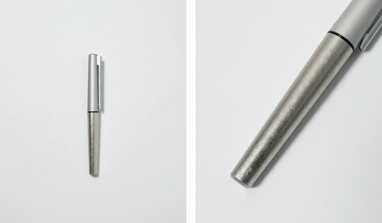 本モデルでは、装飾性を強調するのではなく、粒子の大きさや配置を意図的に抑え、光の当たり方によって静かに表情が変化する仕上げを採用しています。文具としての機能や佇まいを損なうことなく、使い続ける中で質の違いが伝わる設計です。