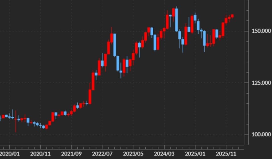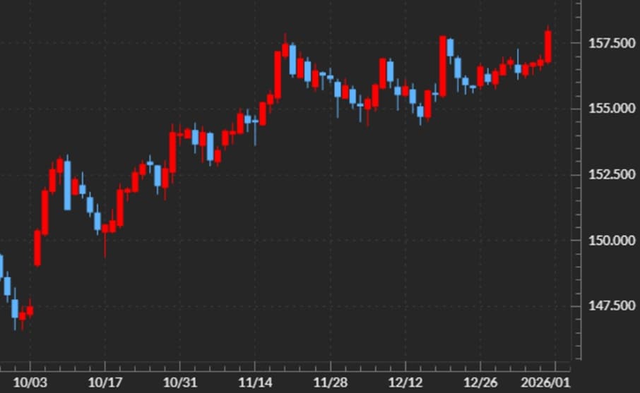 先週の米ドル/円は9日金曜日に大きく上昇し、2025年10月の高市政権誕生後の高値である1ドル=157.8円を上回り、一時158円台を記録しました。