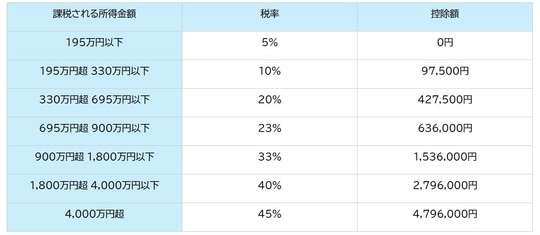 所得税は、給与や不動産の収入、事業の収入など、さまざまな収入を全部足した金額から、社会保険料などを引いた金額に税率をかけます。この税率は、収入の額によって変わります。
