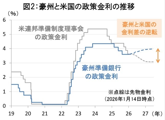 まず、金利環境の面では、2026年には豪州と米国の金融政策が異なる方向に進むことが見込まれます。