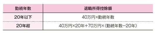 なぜ、退職金には税金がかからないかというと、「退職所得控除」という大きな非課税枠があるからです。退職所得控除は、勤続年数によって異なり、次のように計算します。