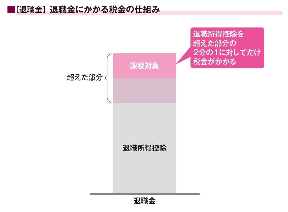 退職金は、退職所得控除を超えた部分の半分に対して税金がかかります。つまり、勤続年数が1年増えると、税金がかかる対象の金額が35万円減ります。所得税は5~45%、住民税は10%ですので、約5~20万円、かかる税金が減ります。