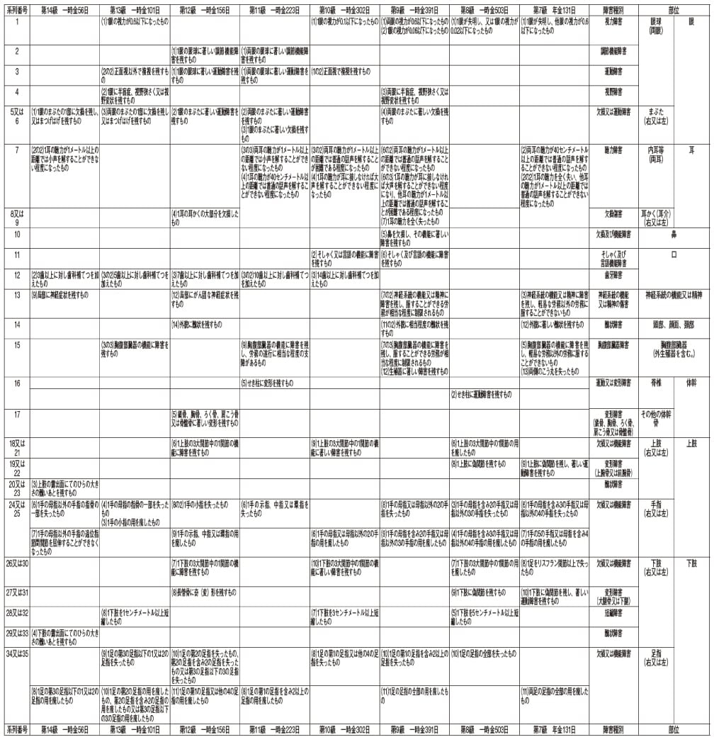 たとえば、脳損傷や脊髄損傷のような中枢神経と、ムチ打ちなどの局部神経症状は、13番「神経系統の機能または精神の障害」として同一系列とされ、同一部位と見なされるのである。