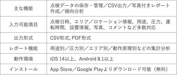 ●Bluetooth対応で、無料の専用スマートフォンアプリと連携し、点検データを記録・管理
