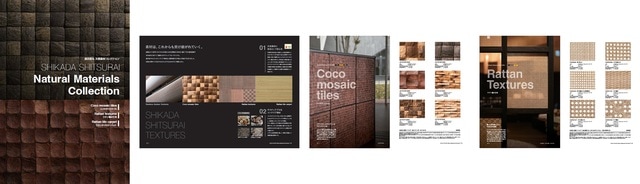 6cm角の実素材サンプルをまとめたサンプル帖を用意。実際の色味・質感を確認したうえでの設計指定が可能です。https://shikada.co.jp/contact よりご請求ください。