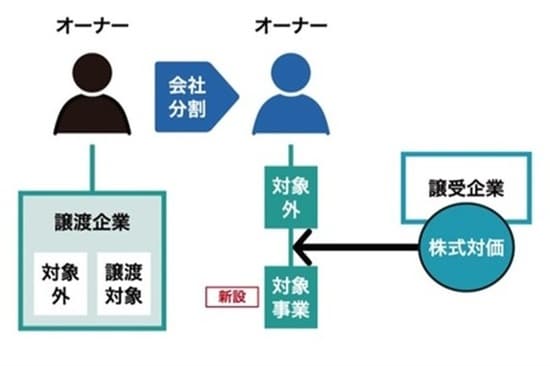 会社分割によって売却対象事業を既存の法人から切り出して完全子会社化したうえで(分社型新設分割)、同子会社の株式を売却するスキームがその一例です。売却対象事業だけを子会社(分割承継法人)へ移管することで、元の法人に残る余剰資金や非事業資産はM&A取引の対象から外れるため、事業承継M&Aで生じる所得金額を少なくする工夫にもつながります。法人税の計算上、子会社株式の売却益に対して幅広い経費を損金として計上することができることもメリットです。