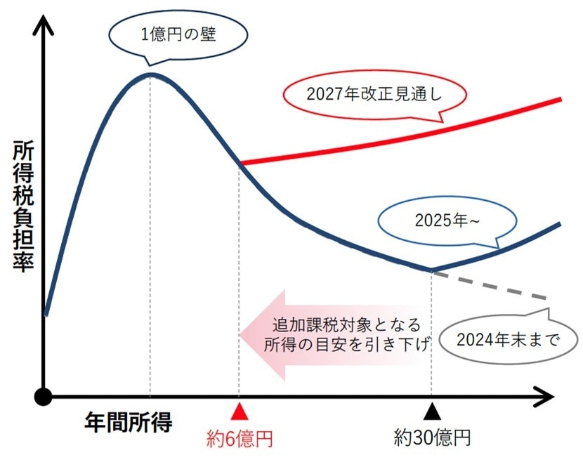 すでに2025年の所得から、極めて高い水準の所得に対して追加課税を行う、いわゆる「ミニマムタックス」が導入されていますが、今回はそれをさらに強化する改正です。