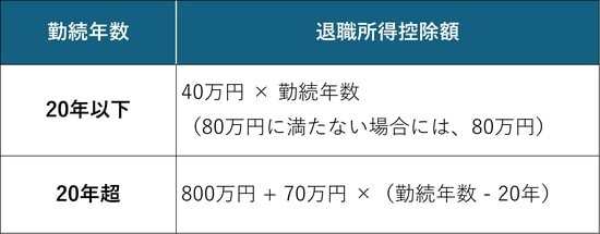 ①(退職金総額 - 退職所得控除※)× 1/2 = 退職所得