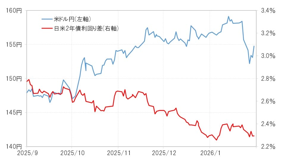 これまで続いてきた日米金利差(米ドル優位・円劣位)の縮小は、米利下げが一段落したことで一巡感が出ています(図表4参照)。今後は、ユーロ高・米ドル安の動きがどの程度米ドル/円に波及するかが、さらなる米ドル安・円高のカギを握ると考えられます。