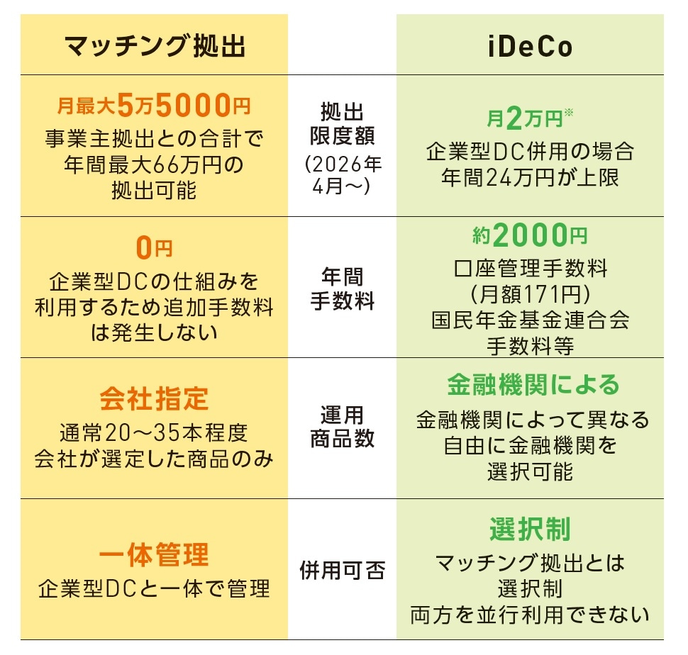 iDeCoとは、別の年金制度ですが、企業型DCに自分で掛金を上乗せできる「マッチング拠出制度」も2026年4月から改正が実施されます。