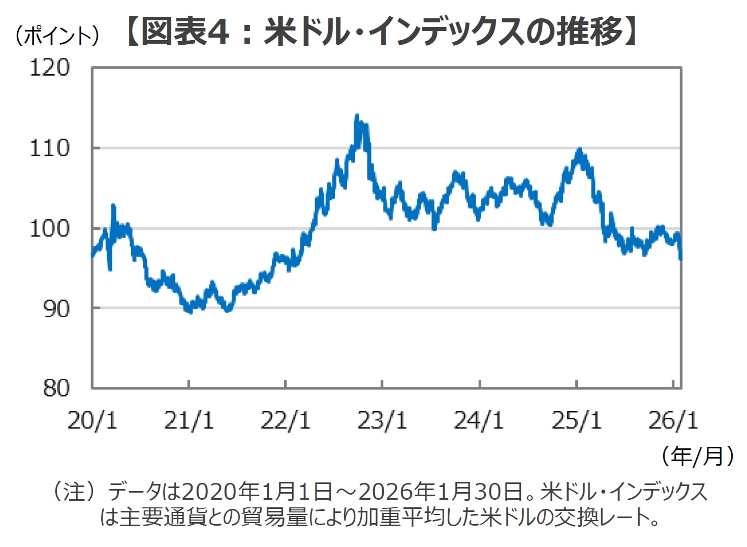トランプ政権の一連の外交政策への拒否反応もあって、足元では米ドルが主要通貨に対して弱含みの傾向を見せています。
