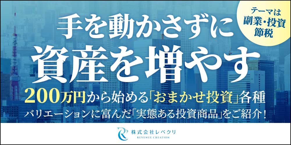 本業が忙しいビジネスパーソンの方、放置型で安定収益を得られる仕組みを探している方、効率よく「収入アップ と 節税」を両立させたい方など、「自身の手をわずらわせたくない・本業に集中したい」方に向けた、柔軟で多様なスキームをご用意。「副業・投資・節税」の3つの力を活用して経済的な豊かさを獲得します。