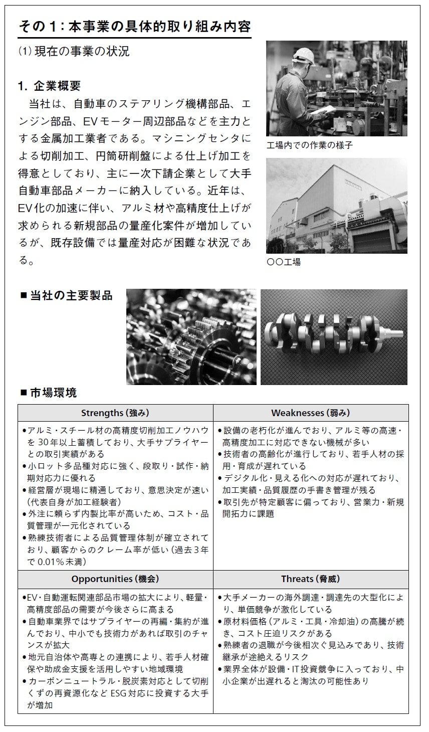 計画書作成において最も大切なのは、課題と解決策のつながりが明確であることです。例えば、人手不足の課題を抱えている企業が、作業を自動化する設備を導入するのであれば、解決策としての合理性があると判断されます。一方で、熟練の職人技術をさらに要するような設備を導入しようとする場合、むしろ人手依存度が高まり、課題解決になっていないと評価される可能性があります。