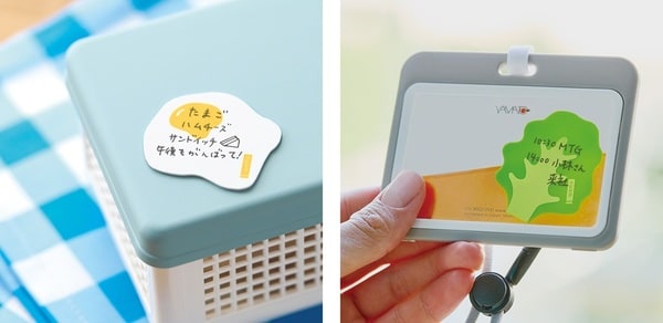 「wemo PETTA」シリーズはコンパクトなサイズでオフィスのデスク周りやキッチン等でも使いやすく、スマートフォンの裏に貼っての持ち運びにも適しています。仕事中や勉強中のメモとして目につく場所に貼っておけば見た目にも楽しいリマインダーとして活用できます。ご家庭では家族のお弁当箱に献立やメッセージを書いて貼ることで心がなごむコミュニケーションツールとしても役立ちます。