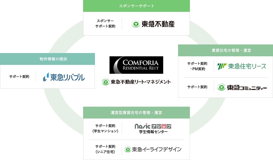 スポンサーである東急不動産を中心とする東急不動産ホールディングスグループの存在も欠かせない。総合不動産デベロッパーとしてのノウハウの他、人々の暮らし・生活に係るニーズに精通した企業グループとして、多面的かつ総合的なノウハウを蓄積している。