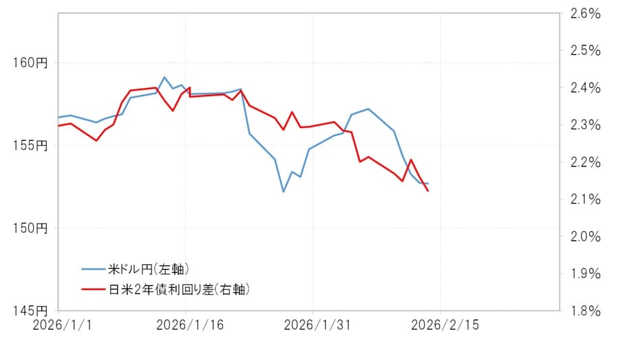 今回見てきたように、衆院選後に米ドル/円は大きく円高へ反転しましたが、日米金利差との関係を踏まえると、150円を大きく割り込むほど下落する可能性は低いとみられます。