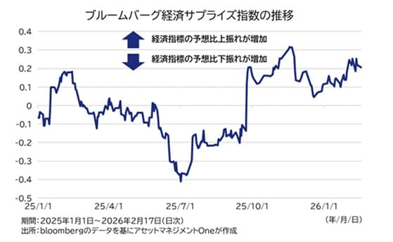 Bloombergが集計する経済指標のサプライズ指数がプラス圏で推移していることも、足元の米国経済が市場予想対比で良好であることを示唆しています。