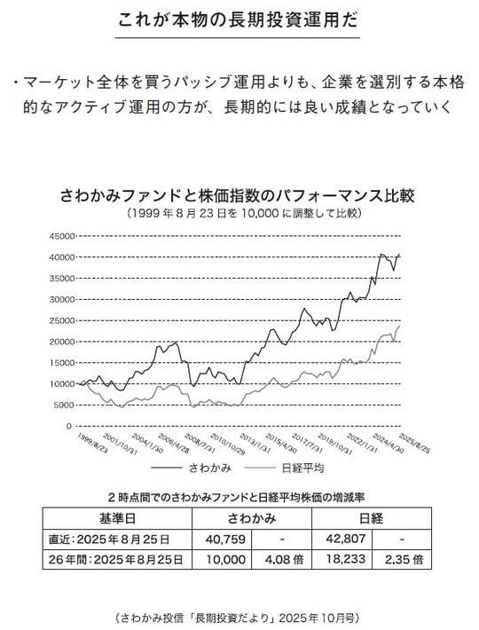 手前ミソながら、さわかみファンドの成績はこの26年間、日経平均株価やTOPIX(東証株価指数)をずっと上回っている(図表1)。