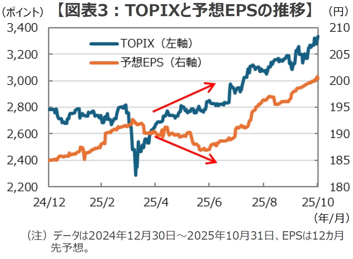 たとえプロの投資家であっても、相場を読み切って上手に立ち回ることは稀で、相場が動いてからその背景やファクトに気づくことが少なくありません。昨年2025年を振り返っても、アナリストが企業の業績予想の上方修正を始め、実際に業績が改善し、予想外の好決算に市場が沸いたのは、マーケットが大きく上昇した後、ないしは、上げ相場の「おいしい時期」が過ぎた後でした(図表3)。