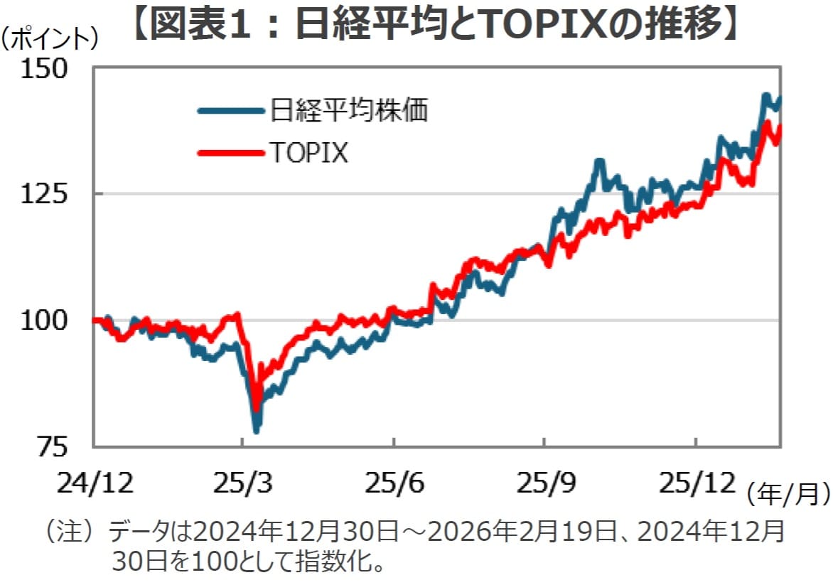 2025年の日本株の動向を振り返っても、日経平均株価は年間に約26.2%上昇、TOPIXは約22.4%、そして、電線株を含む非鉄金属株は100%を超える高パフォーマンスを記録しました。その一方で、(1)昨年4月にはトランプ関税ショックにより市場は大幅な調整に見舞われ(図表1)、(2)予想株価収益率(PER)は過去平均から上振れした「割高状態」が続き(図表2)、そして、(3)世界の株高をけん引してきた米国のAI関連株についてはデータセンターへの過剰投資が問題視されるようになるなど、「売る理由」に事欠かない年であったのも事実で、手練れのプロ達でも頭を悩ませる難しい相場展開でした。