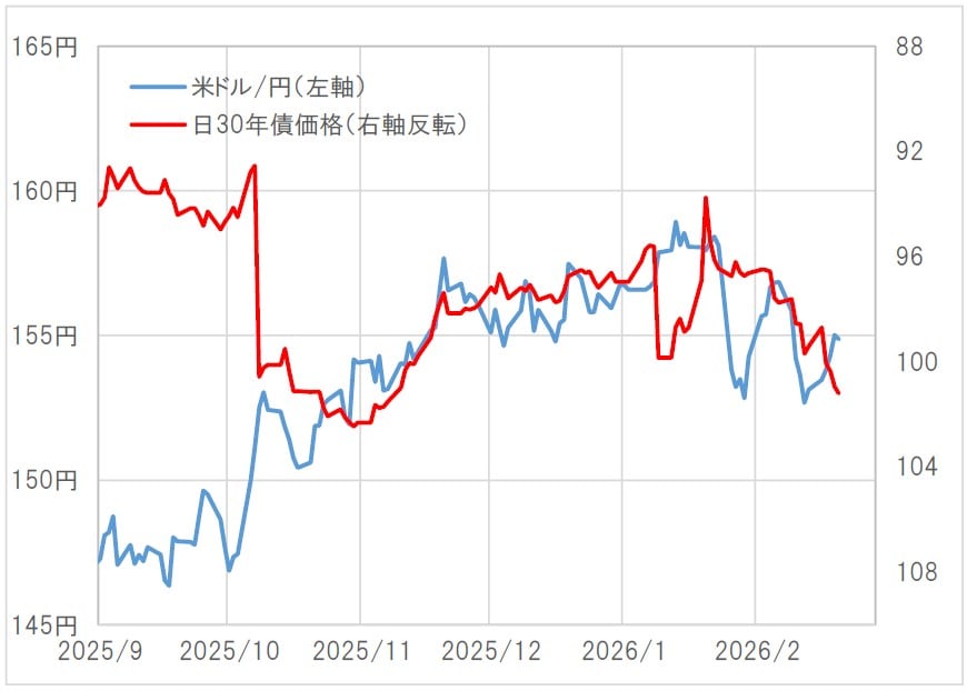 以上のように見ると、円安が本格的に再燃するかは、日本の財政リスクを警戒した債券、とくに超長期債券の下落の再燃が目安になるのではないでしょうか。その超長期債、たとえば30年物国債価格は先週も反発傾向が続きました。こんなふうに、「財政懸念の円売り」一服が続くなかでは、円安再燃もおのずと限られるのではないでしょうか。