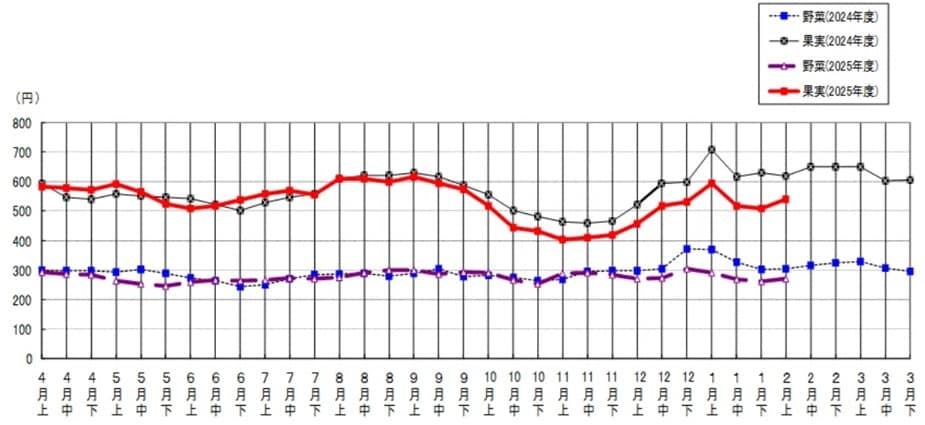 野菜▲10.8%、果実▲12.6%…主要卸売市場で続く価格の落ち着き