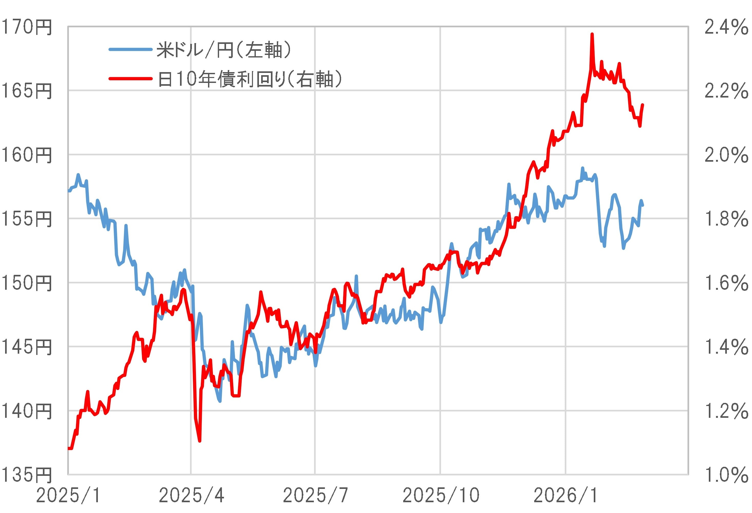 衆院選挙中の、高市総理による「円安は輸出企業にとって大チャンス、外為特会にはホクホク」といったいわゆる「ホクホク発言」、そして2月25日付けの毎日新聞による2月の植田日銀総裁との会談で追加利上げに難色を示したといった報道などを合わせると、2024年の自民党総裁選挙なかの「今金利を上げるのはアホやと思う」といった具合の円安容認、利上げ反対の姿勢は今でも基本的に変わっていない可能性がありそうです。