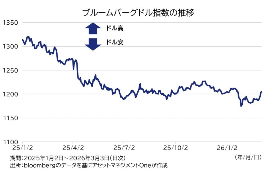 為替市場に目を向けると、2月中旬からドルが買われる展開が続いています。中東有事が勃発してからは、ドル買いが一段と強まりました。