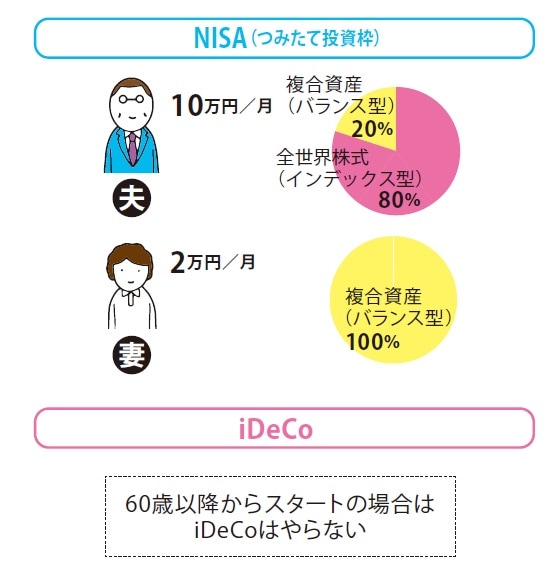 妻は、月2万円を比較的リスクが少ないバランス型に積み立て、自身の老後資金を増やしましょう。