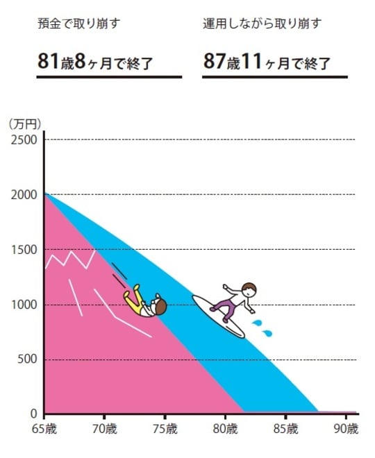 例えば、老後資金として使うなら運用しながら取り崩すことで、お金の寿命を伸ばせます。