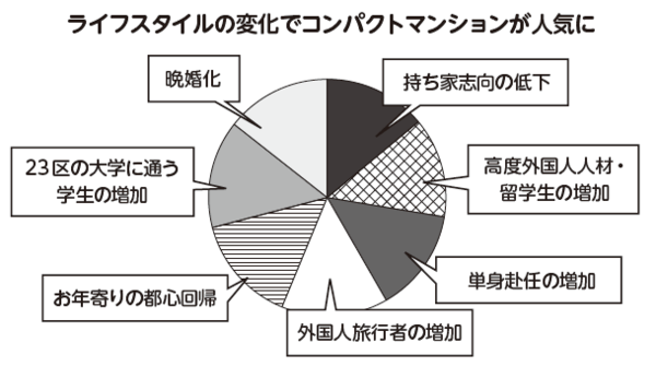 現在、賃貸マンションのニーズは多様化しています。その理由として、ライフスタイルの変化でコンパクトマンションの人気が高まっているということです。