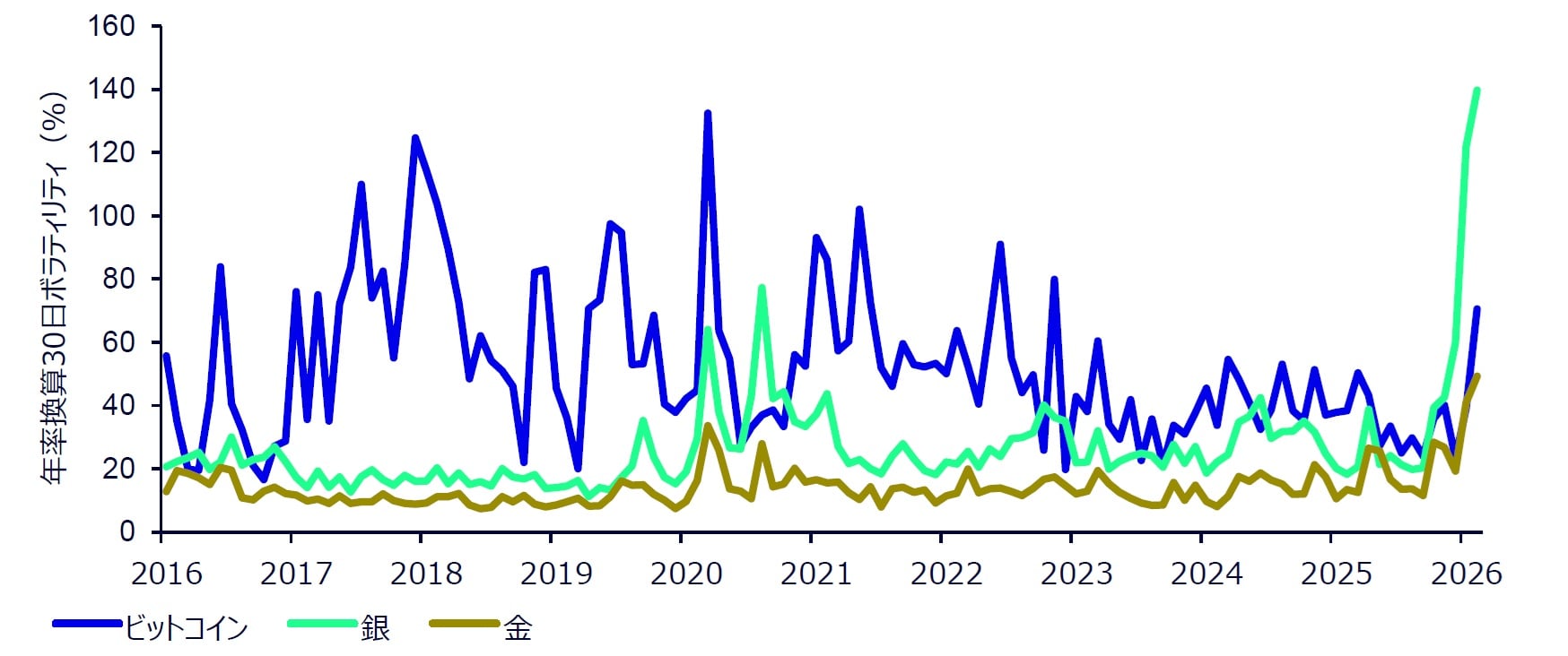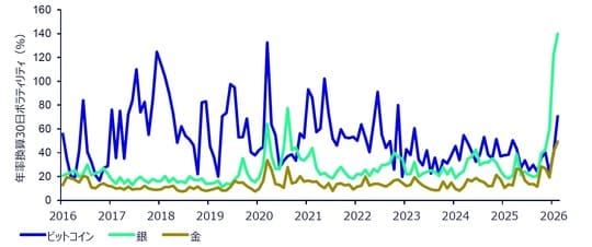 ★1 出所:ブルームバーグ・フィナンシャル L.P.、ステート・ストリート・インベストメント・マネジメント(2016年1月~2026年2月)。注記:データはローリング時系列における実現30日価格ボラティリティ(年率)を示しています。