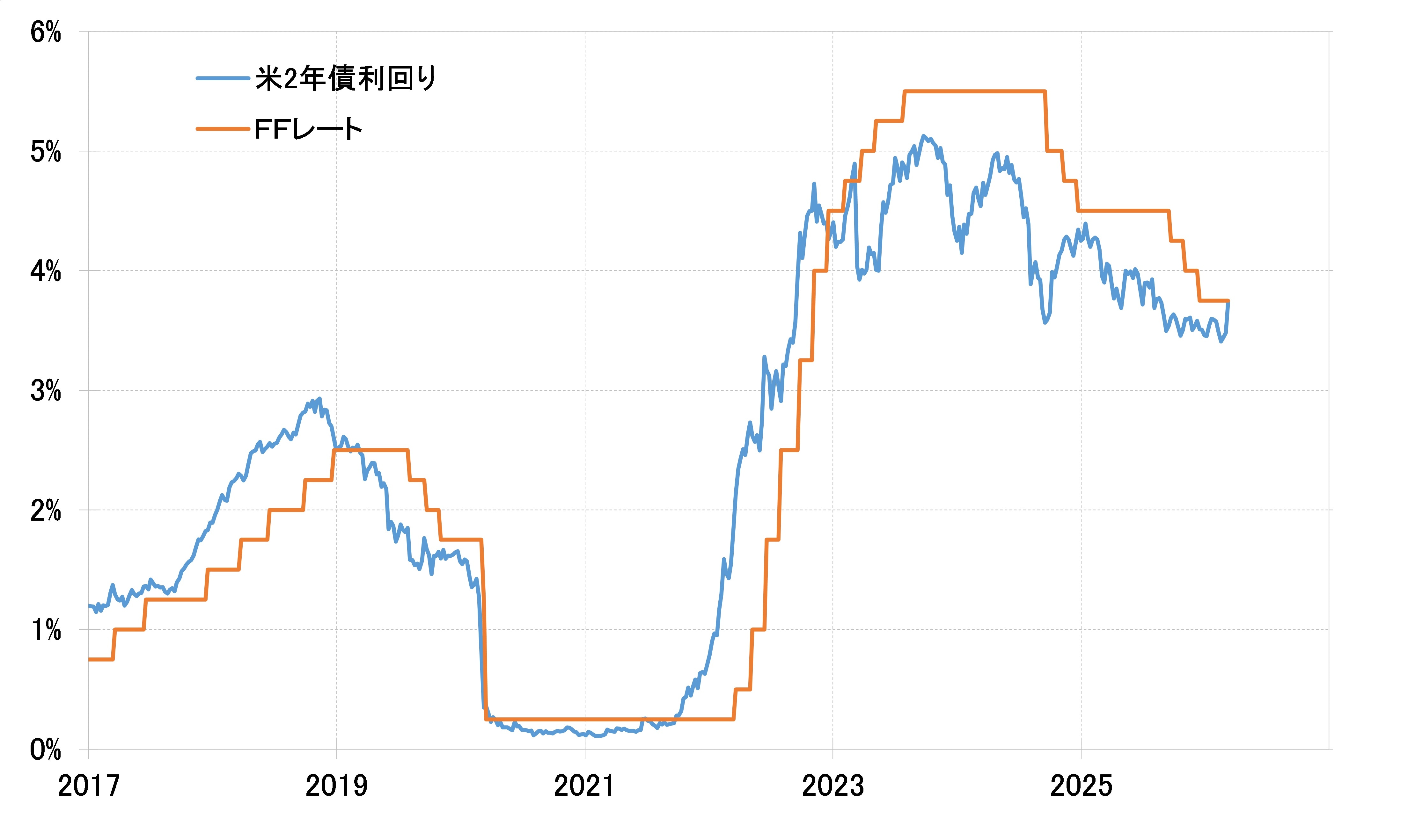 こういったなかで、米金融政策を反映する米2年債利回りは、政策金利のFFレート誘導目標上限の3.75%程度まで上昇しました(図表4参照)。つまり当面の追加利下げ見通しがほぼ消えたわけです。その上さらに米2年債利回りが上昇するなら、それは一転して利上げを織り込む意味になりますので、それはさすがにまだ微妙ではないでしょうか。