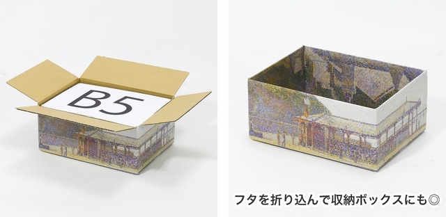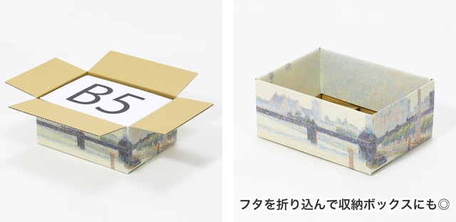 梱包資材としてはもちろん、収納ボックスやディスプレイにもおすすめ。美術館を歩くような感覚で、ゆっくりとダンボール箱を選べるページも新設。