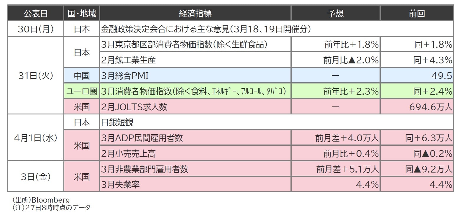 今週は、日銀短観(3月調査)や3月の米雇用統計などに注目しています(図表1)。
