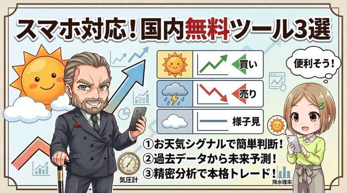 シグナルの強さを「お天気マーク」で表現し、初心者でも視覚的にトレンドを判断可能です。