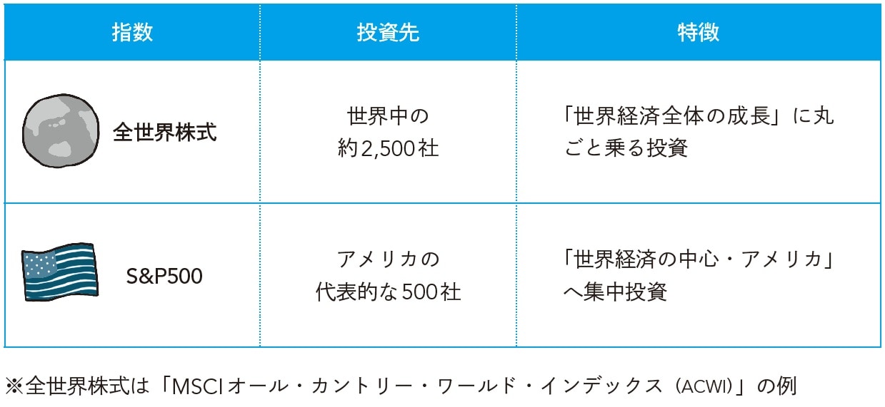 よくいただく質問です。実は「全世界株式」や「S&P500」というのは、あくまで投資の「指数(インデックス)」の名前であって、商品名ではありません。