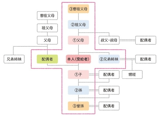 「贈与税の非課税財産」と「扶養義務者」について補足説明します。「扶養義務者」とは配偶者(夫・妻)、直系血族(子・孫・ひ孫)、兄弟姉妹、生計を一にしている3親等以内の親族のことです。