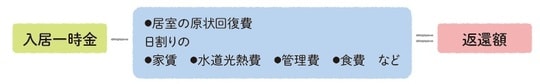 この短期解約特例は、入居日から3ヶ月(90日)以内に解約を申し入れた場合や入居者本人が死亡した場合などであれば、無条件で契約解除できる制度です。すでに支払い済みの一時金から入居日数分の家賃とサービス費、居室の原状回復費などを差し引いた金額の返還が法律で定められています。(「月払い方式」は短期解約特例の対象外)