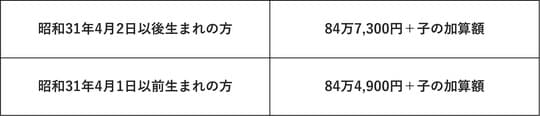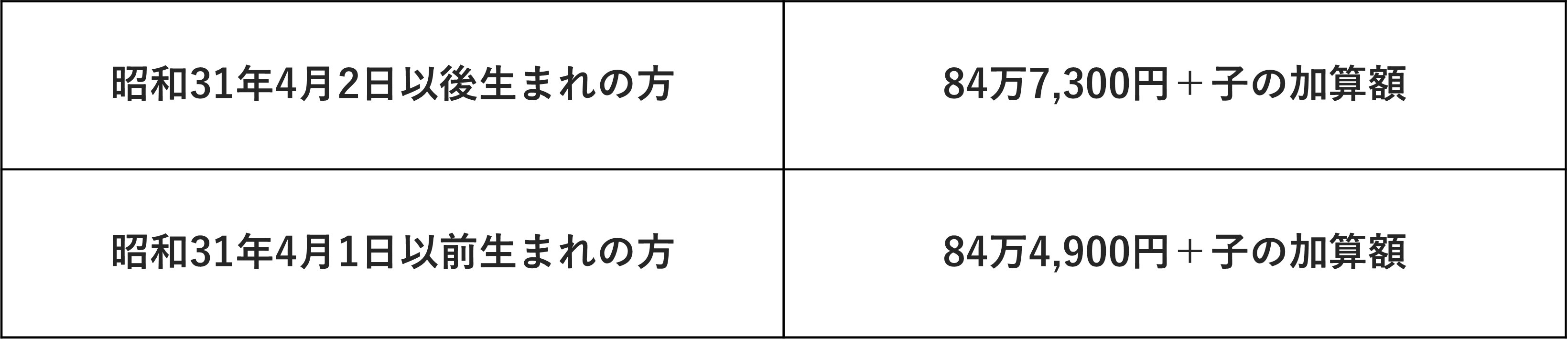 子の加算額は、第1子および第2子の場合、各24万3,800円、第3子以降の場合、各8万1,300円となります。