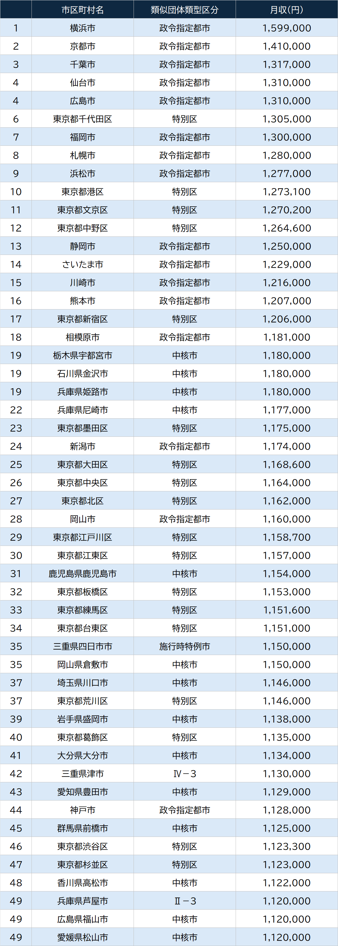 全国「市区町村長の給与」1~50位