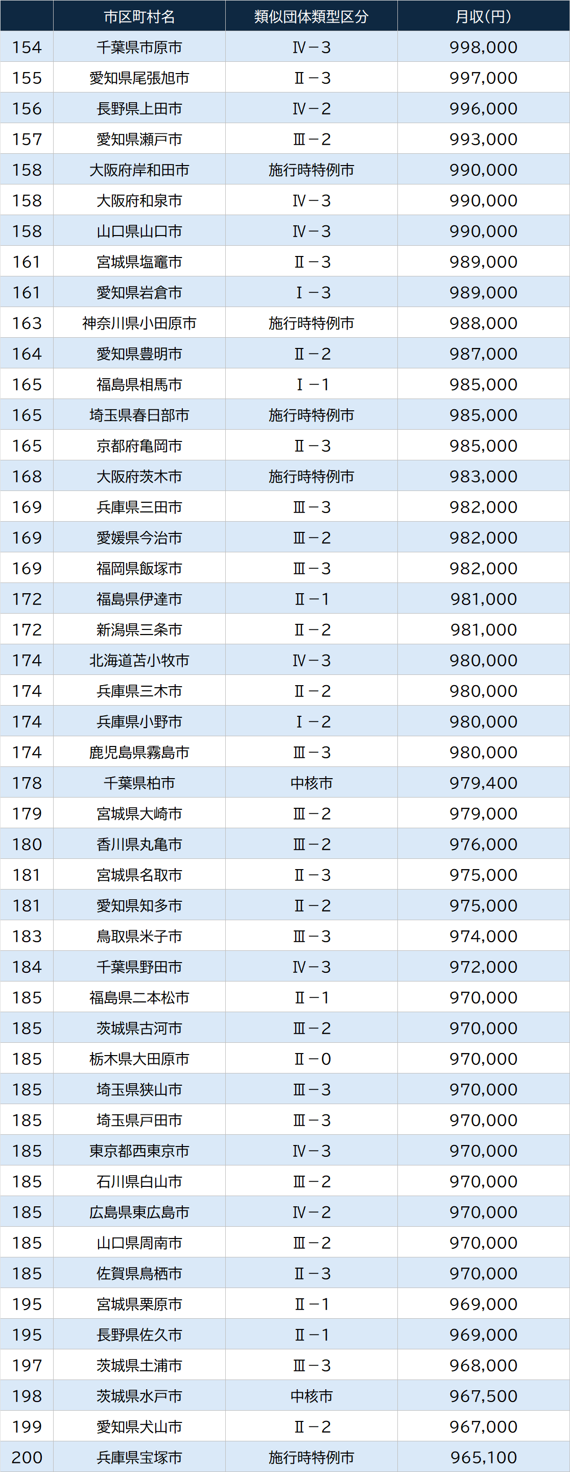 全国「市区町村長の給与」151~200位