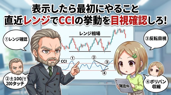 「CCIはレンジ相場専用の逆張り武器として割り切れ。トレンドが出ている場面では封印しろ」
