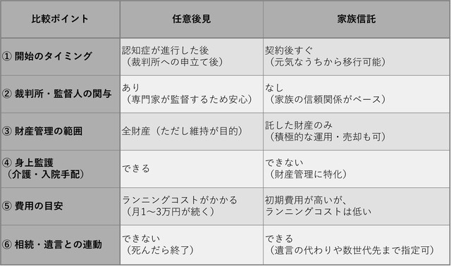 どちらを選ぶべき? 「任意後見」「家族信託」の徹底比較