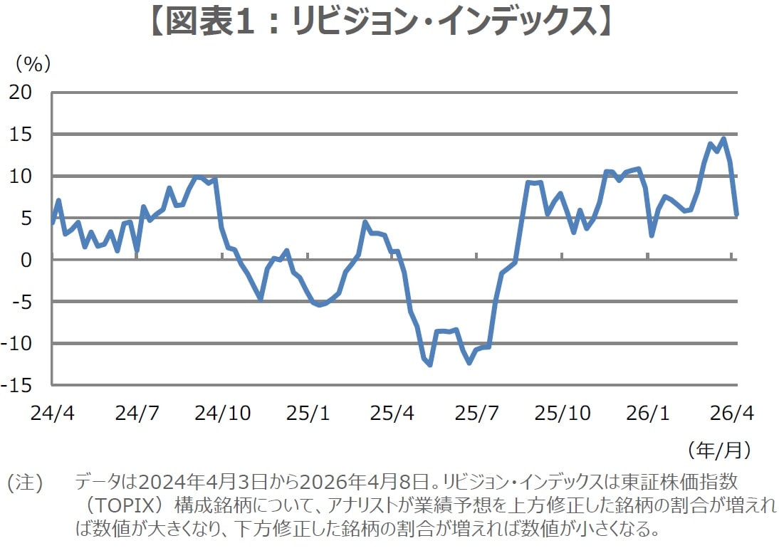 中東情勢の先行きは依然不透明感が残るため、企業の2026年度の業績見通しは、総じて控えめな内容となることも想定されます。その場合、市場の業績予想が下方修正され、前述のリビジョン・インデックスなどが低下し、株価の重しになる恐れもあります。ただ、年度初めの業績予想の目線が低ければ、その分、中東情勢が改善した際の、業績予想の上方修正を織り込む形での株価反発余地は大きくなるため、過度な悲観は必要ないと考えます。